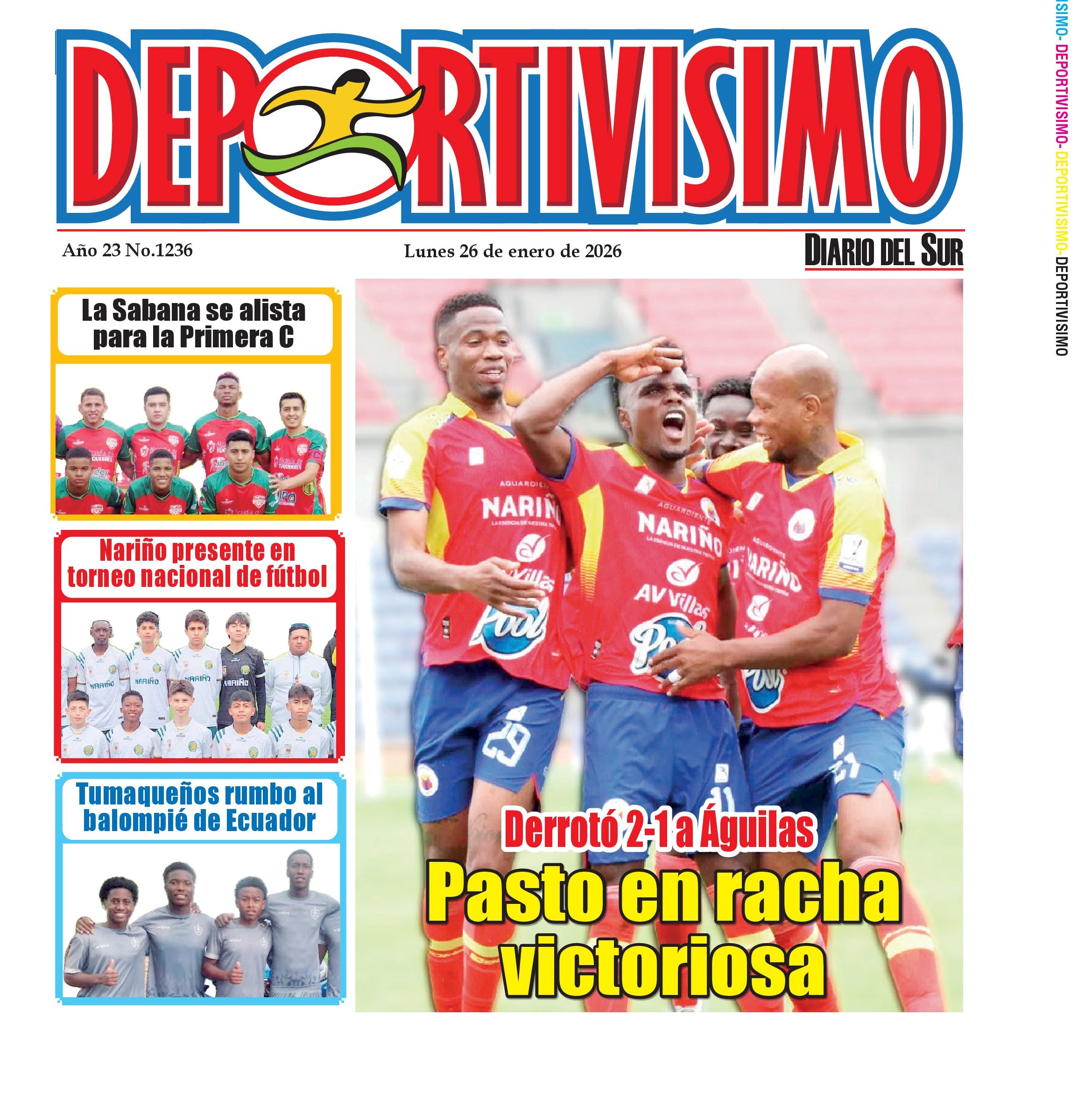 Noticias del Sur Occidente Colombiano DIARIO DEL SUR comparte con ustedes la portada de la edición impresa de la revista DEPORTIVISIMO del 26 de enero de 2026. Los invitamos a adquirir nuestra edición impresa, lo llevamos a la puerta de su casa. Llámanos al 313 8282522