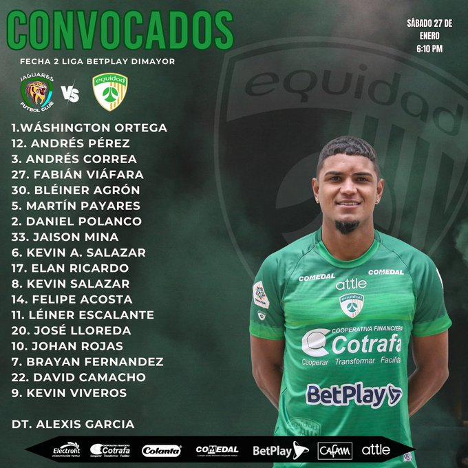 En la continuidad de la segunda jornada del fútbol colombiano, Jaguares de Córdoba, que puede ser líder de la Liga en caso de ganar por una buena diferencia de gol, recibe a La Equidad.