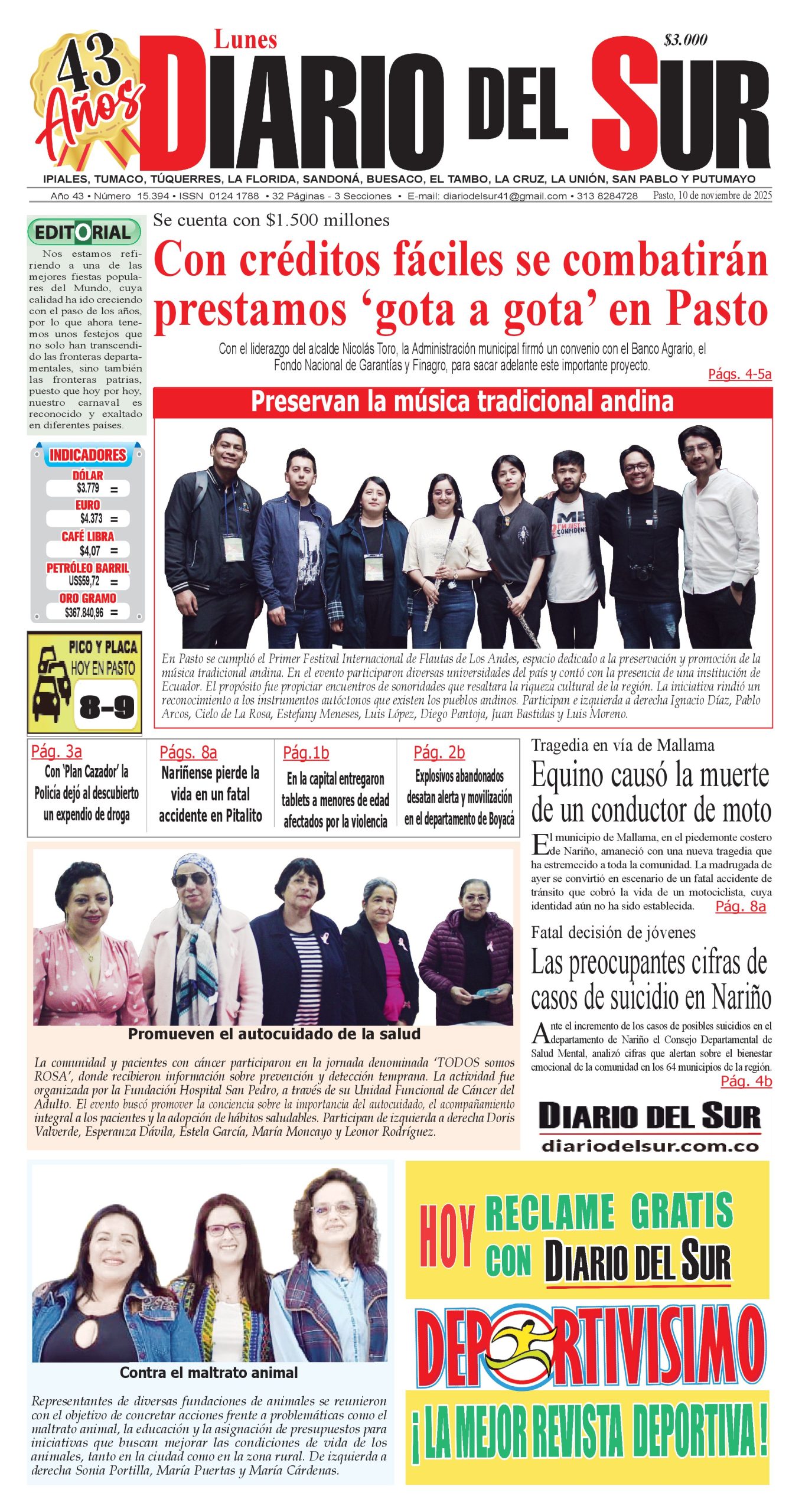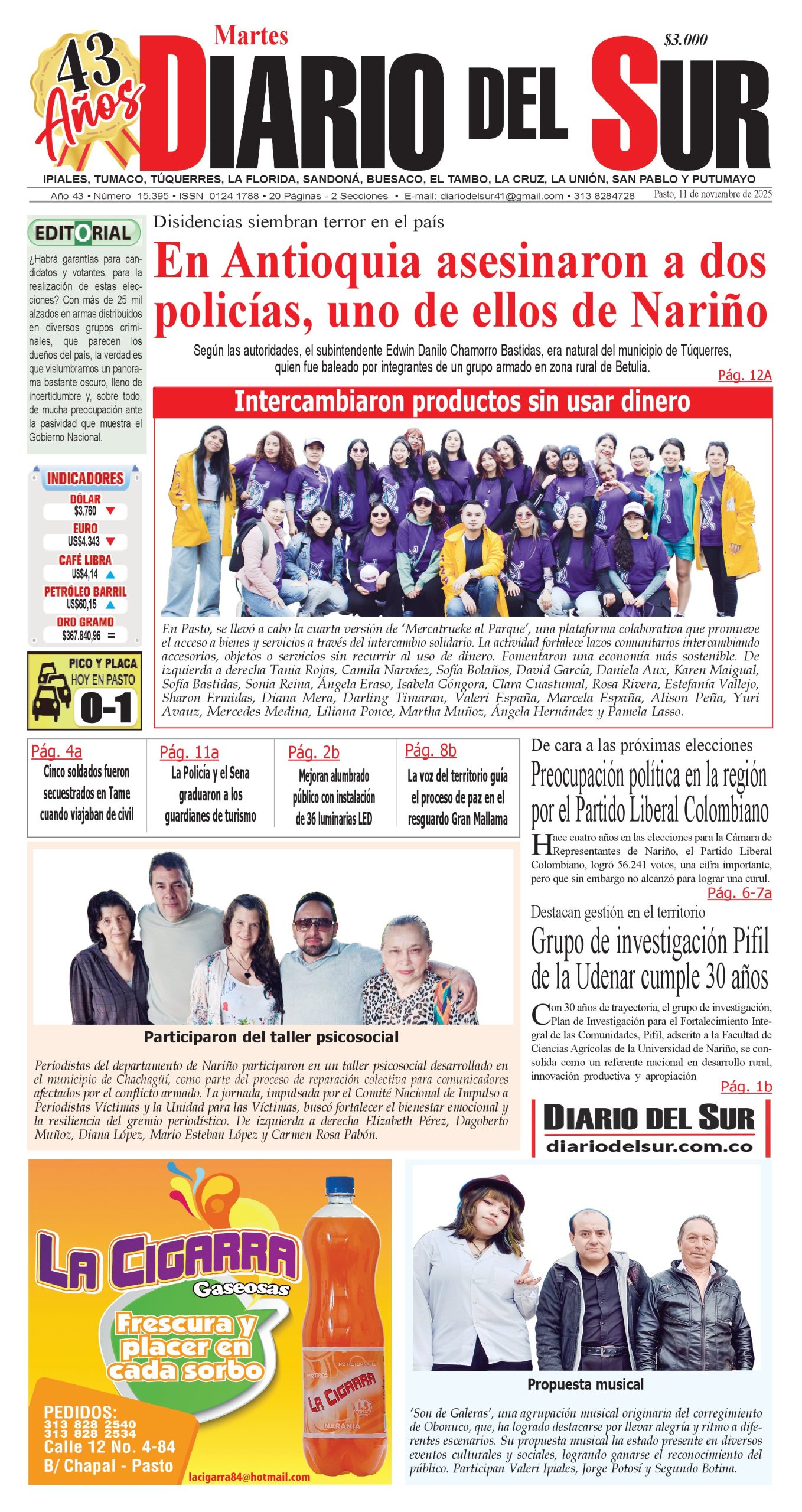 Noticias del Sur Occidente Colombiano DIARIO DEL SUR comparte con ustedes la portada en su edición impresa del 11 de noviembre de 2025. Los invitamos a adquirir nuestra edición impresa, lo llevamos a la puerta de su casa. Llámanos al 313 8282522