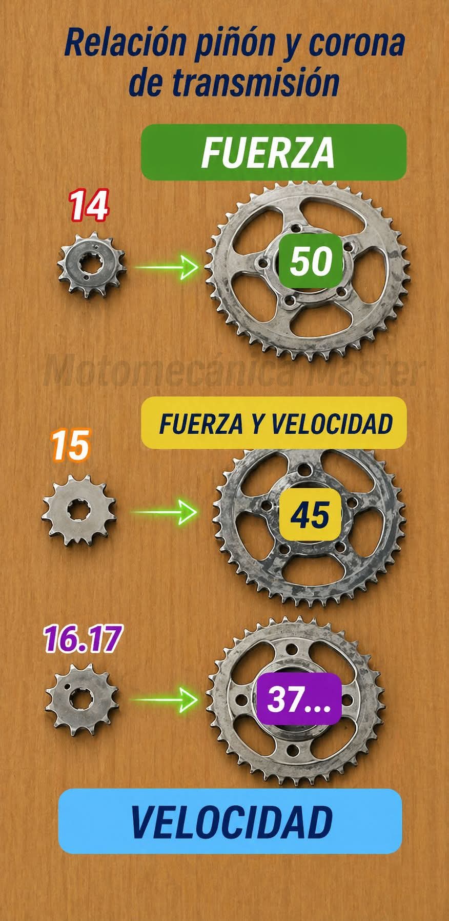 🚨 RELACIÓN PIÑÓN – CORONA EN MOTOS⚡🔧🛵La relación entre piñón y corona define cómo se comporta la moto en salida, fuerza y velocidad final. No es solo cuestión de cilindrada, sino de equilibrio entre potencia y transmisión 👉 Esta relación determina cómo se distribuye la potencia del motor entre fuerza (torque) y velocidad.🛑 Piñón 14 / Corona 50 (ENFOQUE EN FUERZA)Relación corta (alta multiplicación de torque)🔹 Genera mayor fuerza en la rueda trasera🔹 Mejor salida desde parado🔹 Ideal para carga, subidas o terrenos difíciles🔹 Respuesta rápida en bajas RPM🔸 Desventajas:🔹 Menor velocidad final🔹 Motor trabaja a más revoluciones🔹 Mayor consumo de combustible🛑 Piñón 15 / Corona 45 ( FUERZA–VELOCIDAD)Relación intermedia🔹 Equilibrio entre aceleración y velocidad🔹 Buena respuesta en ciudad y carretera🔹 Mantiene RPM moderadas🔸 Ventajas:🔹 Versatilidad en diferentes condiciones🔹 Menor desgaste comparado con relación corta🔸 Desventajas:🔹 No es la mejor opción para extremos (ni máxima fuerza ni máxima velocidad)🔴 Piñón 16 / Corona 37 (ENFOQUE EN VELOCIDAD)Relación larga (baja multiplicación de torque)🔹 Mayor velocidad final🔹 Menor régimen del motor a altas velocidades🔹 Mejor eficiencia en carretera🔸 Desventajas:🔹 Menor fuerza en salida🔹 Pierde potencia en subidas o con carga🔹 Aceleración más lenta📌 CONCEPTO TÉCNICO CLAVE👉 Piñón pequeño + corona grande = más torque (fuerza)👉 Piñón grande + corona pequeña = más velocidad 🛑DETALLE IMPORTANTE🔷 Cambiar piñón/corona sin considerar el motor altera:🔸 Aceleración🔸 Velocidad máxima🔸 Consumo de combustible🔸 Desgaste de cadena y transmisión🔸 También influye en:🔸 Temperatura del motor🔸 Respuesta del acelerador🔸 Esfuerzo del embrague🔴 RECOMENDACIÓN TÉCNICA FINAL🔸 No modifiques la relación sin considerar el uso real de la moto.🔸 Cambios extremos pueden:🔸 Forzar el motor🔸 Aumentar desgaste de cadena, piñón y corona👉Elegir la relación correcta hace que tu moto se sienta más eficiente, cómoda y acorde a tu estilo de manejo #MotorcycleMechanics #MotorcycleMaintenance #MotorcycleRepair #MotoTips #Motorcyclists #Bikers