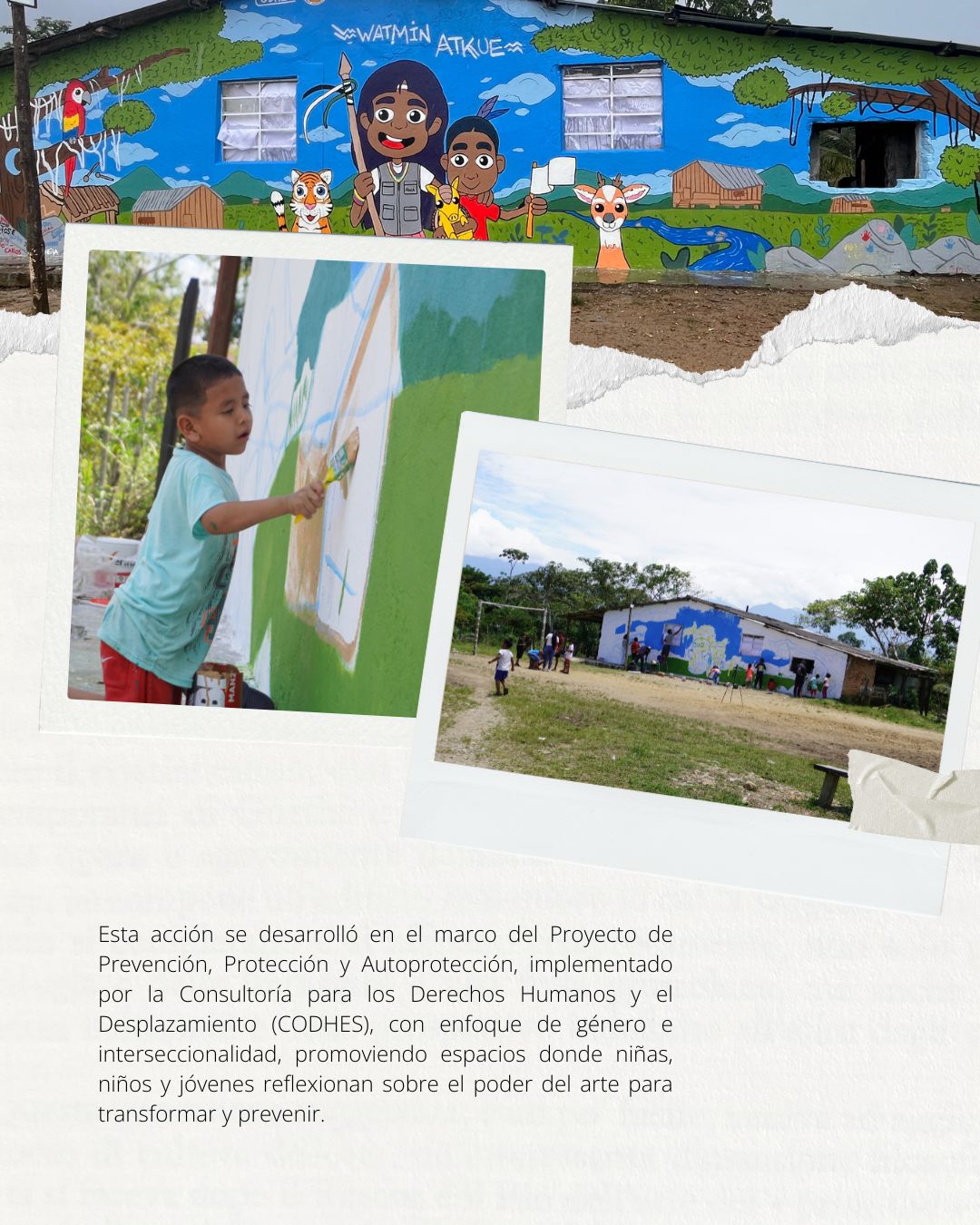 El impacto alcanzado en Nariño llevó a CODHES a extender la experiencia al departamento del Putumayo, otro territorio golpeado por el conflicto armado y el desplazamiento forzado. Allí, el muralismo se ha convertido en una herramienta de arraigo y protección colectiva, especialmente para comunidades afrodescendientes e indígenas que han debido reconstruir su vida tras años de violencia.