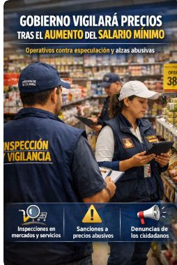 El Ministerio de Trabajo, en coordinación con las autoridades de comercio y protección al consumidor, informó que se activarán operativos de inspección en mercados, supermercados, transporte y servicios esenciales, especialmente durante las primeras semanas de aplicación del nuevo salario. La prioridad será detectar prácticas especulativas o abusos que no estén respaldados por incrementos reales en los costos de producción.