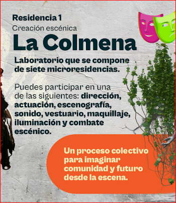 ● La Colmena (Creación escénica): laboratorio coral inspirado en la obra Piel Mercurio de Philip Ridley, estructurado en siete microresidencias interdependientes: dirección escénica; diseño escenográfico y dirección de arte; vestuario; diseño sonoro y música; maquillaje; iluminación; y combate escénico.