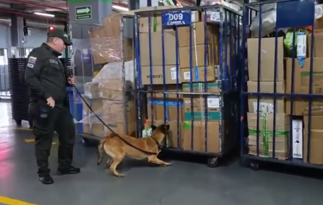 El olfato de la canina Kira permitió a la Policía incautar cerca de 100 kilos de marihuana en una bodega de envíos nacionales del aeropuerto El Dorado, en Bogotá. El hallazgo se produjo durante labores de control adelantadas por uniformados de la estación de Policía Aeropuerto.