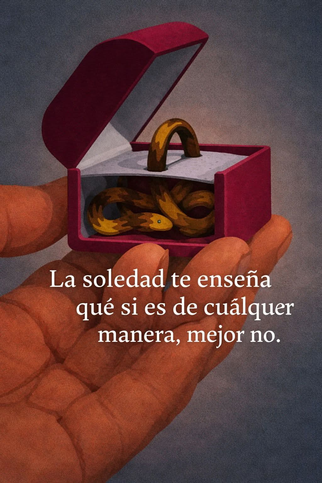 La soledad llega como una prueba silenciosa: te enfrenta a todo lo que aceptaste por miedo a quedarte sin nadie. En ese vacío incómodo se caen las excusas, se rompen las ilusiones y aparece una verdad clara: no todo vínculo vale la pena, no toda promesa es amor.La soledad no te abandona, te despierta; te enseña a mirar sin adornos aquello que antes justificabas.Y cuando lo entiendes, algo se ordena por dentro. Prefieres la calma a la costumbre, la dignidad al apego, la paz a la compañía que lastima. Dejas de extender la mano para recibir lo que te hiere y aprendes que estar solo, a veces, es la forma más honesta de cuidarte.
