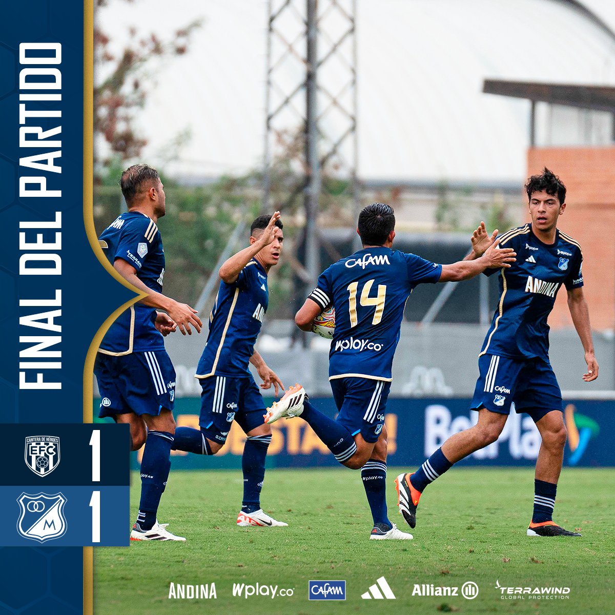 Por parte de Envigado, el encargado de abrir el marcador fue Luis Ángel Cuesta al minuto 14. Posteriormente, David. M. Silva, el capitán de Millonarios empató el encuentro.