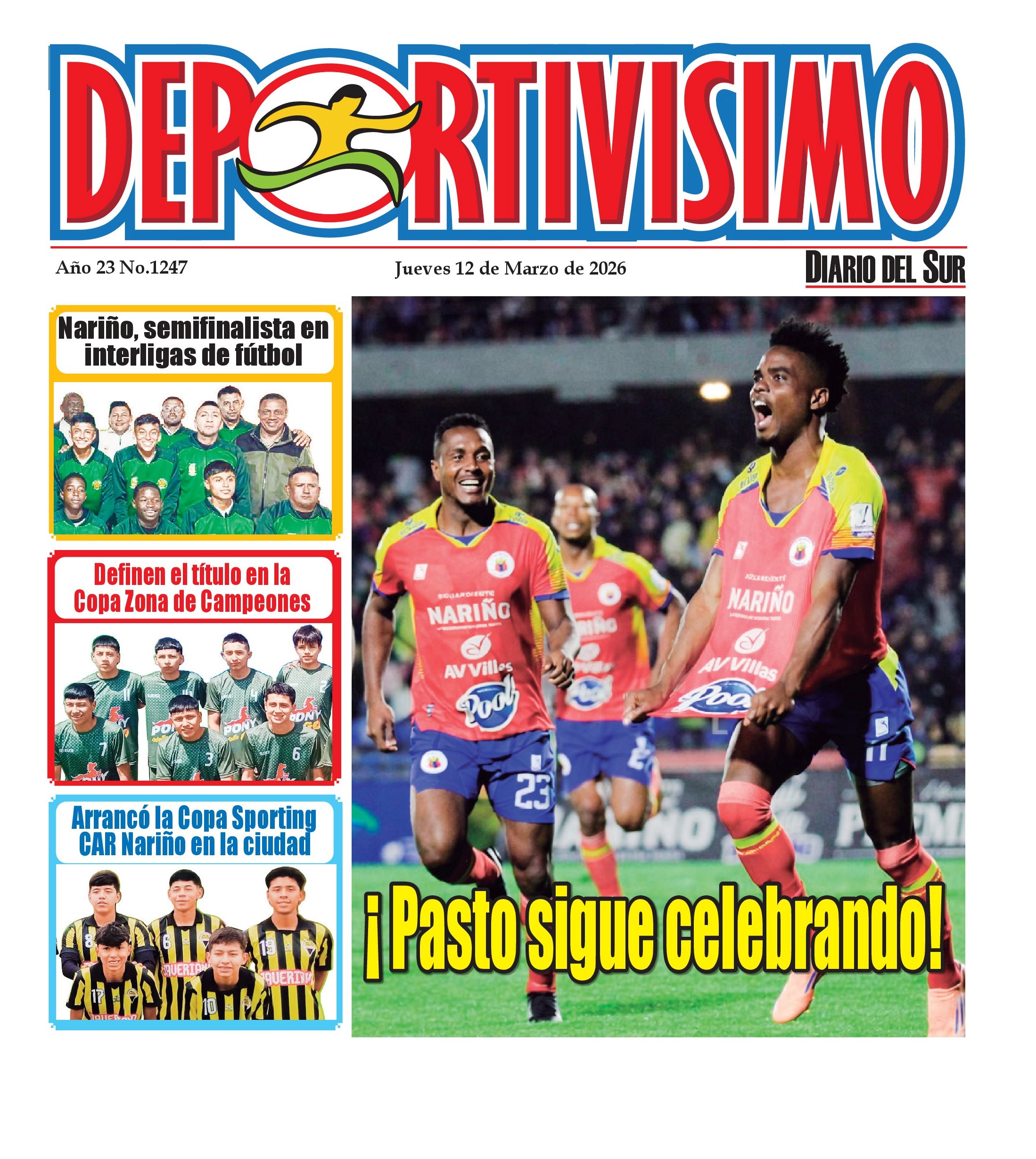 Noticias del Sur Occidente Colombiano DIARIO DEL SUR comparte con ustedes la portada de la edición impresa de la revista DEPORTIVISIMO del 12 de marzo de 2026.