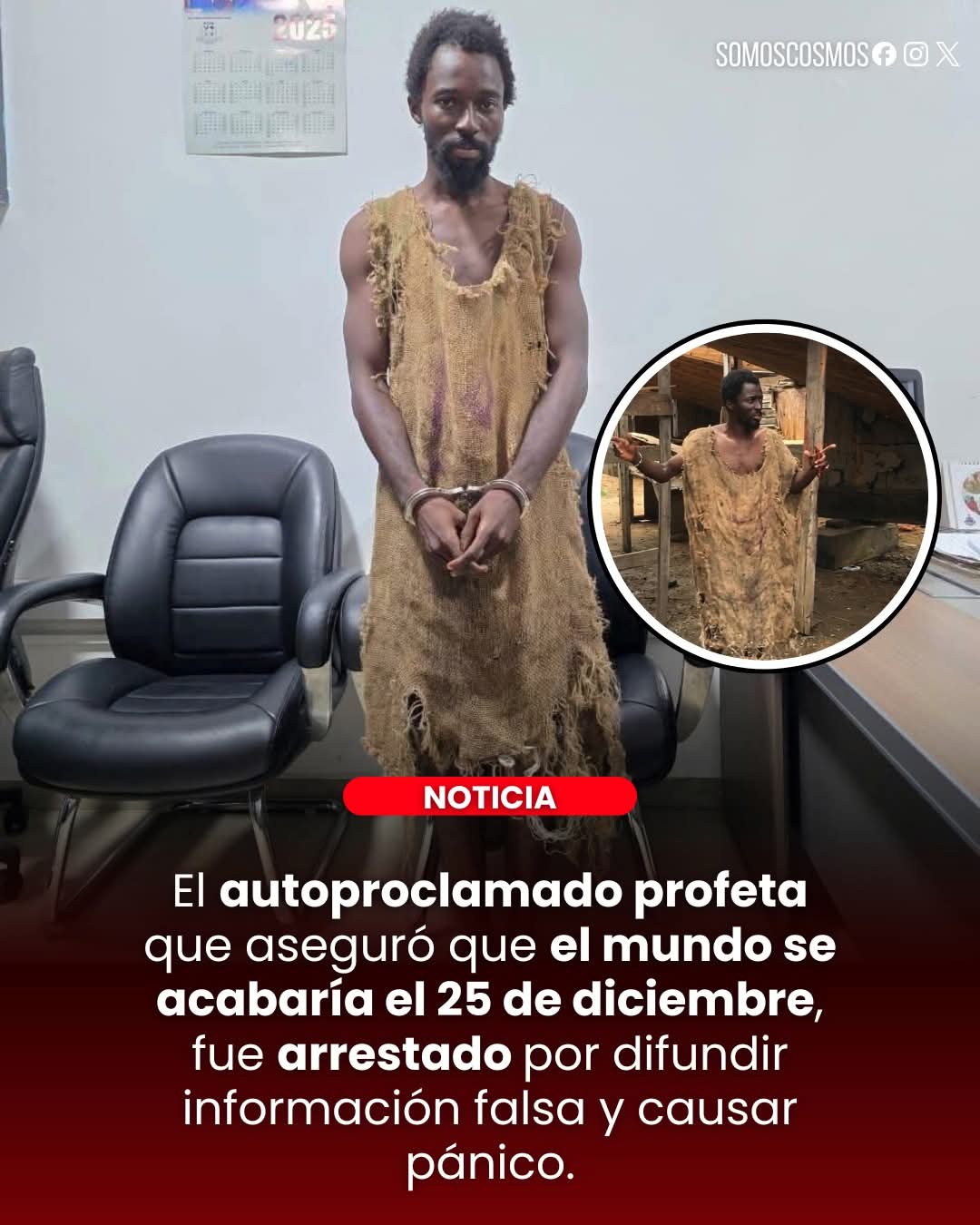 ¿Recuerdan al autoproclamado profeta que aseguró que el mundo se acabaría el 25 de diciembre? Fue arrestado.Se trata de Evans Eshun, también conocido como Ebo Noah, un predicador de Ghana que se volvió viral tras anunciar un supuesto diluvio global para diciembre de 2025, basado en revelaciones divinas. Cuando la fecha pasó sin que ocurriera nada, afirmó que había rogado a Dios para que le concediera más tiempo. Antes de ello, había solicitado donaciones para construir supuestas arcas, y se reportó que algunos seguidores tomaron decisiones extremas como vender propiedades.Según informó Sahara Reporters, el 31 de diciembre las autoridades lo arrestaron acusándolo de difundir información falsa y causar alarma pública. El caso se procesó en un tribunal local, donde fue remandado para investigaciones adicionales.