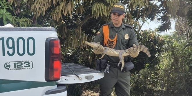 La Policía Nacional, a través del Grupo de Carabineros y Protección Ambiental, en desarrollo de las acciones permanentes para la protección del medio ambiente y la fauna silvestre, realizó el rescate y aprehensión de una Babilla (Caiman crocodilus) en zona rural del municipio de San Martín, Meta.