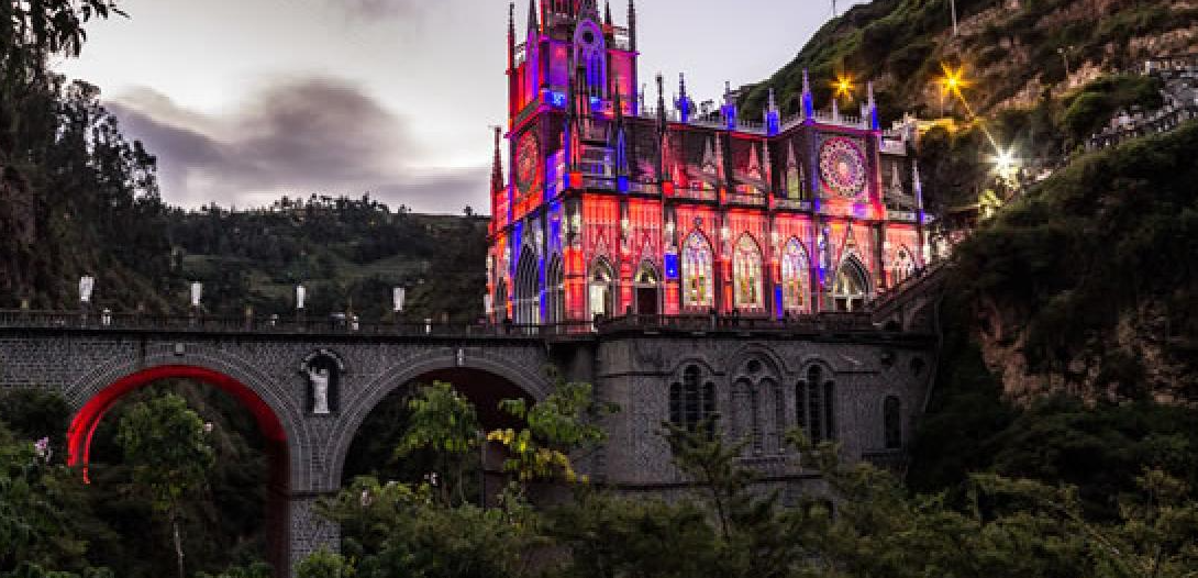 Uno de los sitios más visitados durante esta época es el Santuario de Nuestra Señora de Las Lajas, considerado uno de los templos más emblemáticos del país y un importante punto de peregrinación para miles de turistas y creyentes.