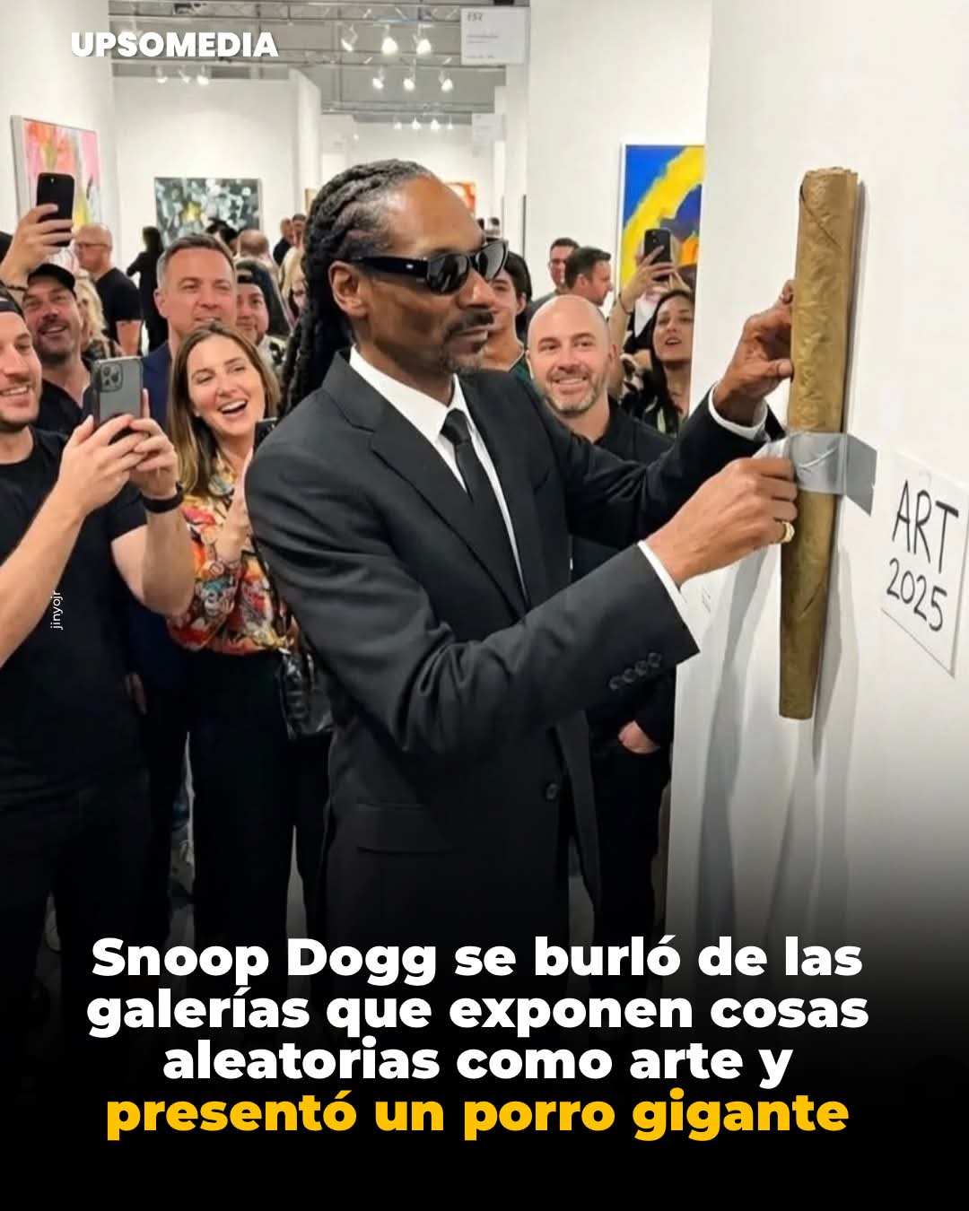 Snoop Dogg se burló de las galerías que exhiben cualquier cosa como arte y se quiso sumar: creó un porro gigante y lo pegó a la pared junto a una etiqueta que decía “Arte 2025”. Así, el rapero presentó su obra más “discreta”.